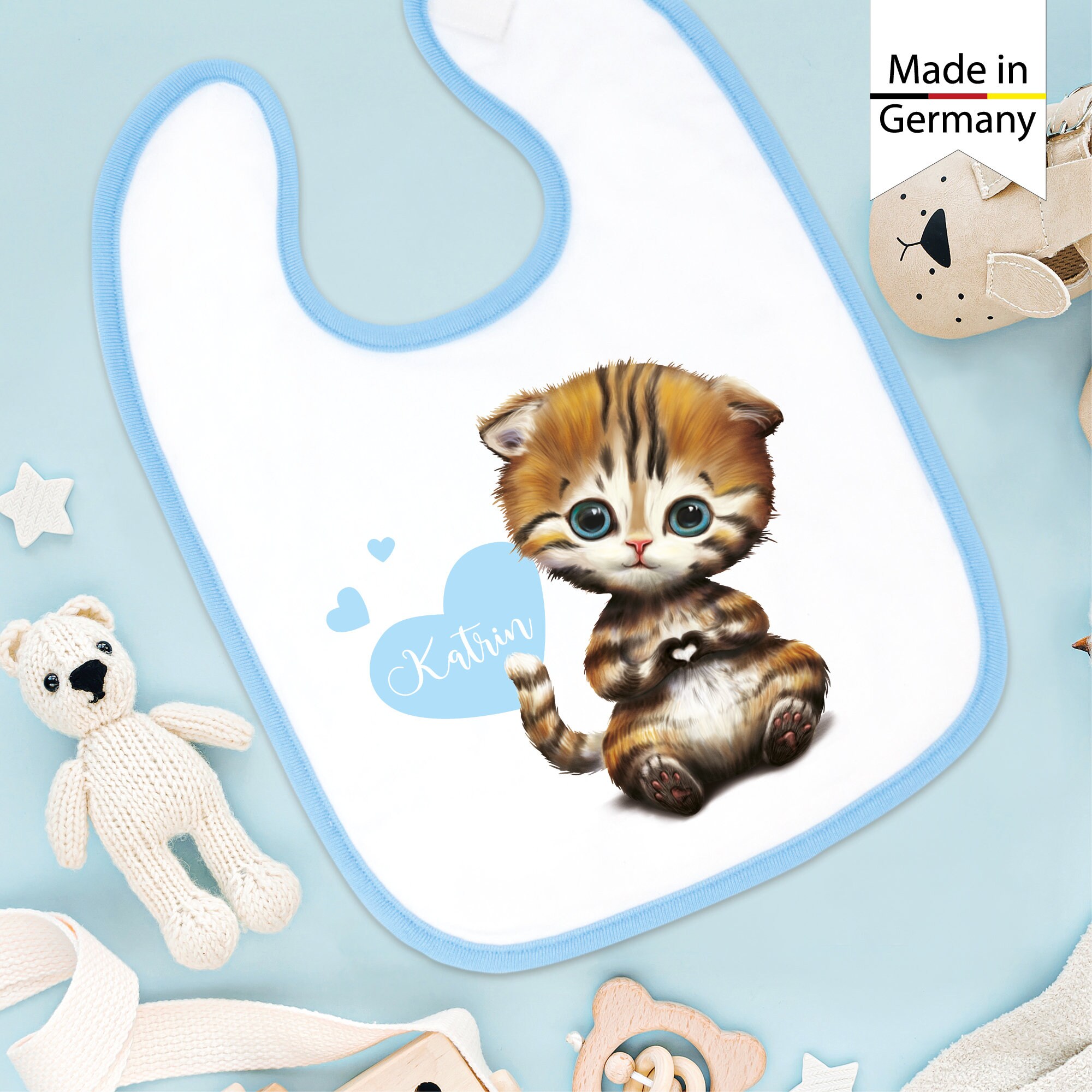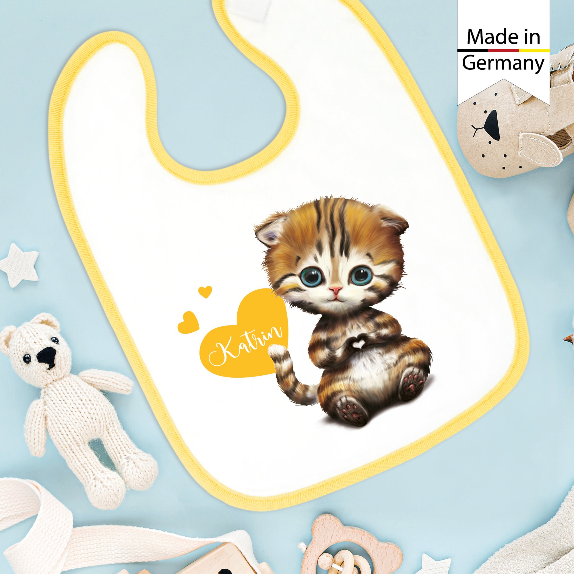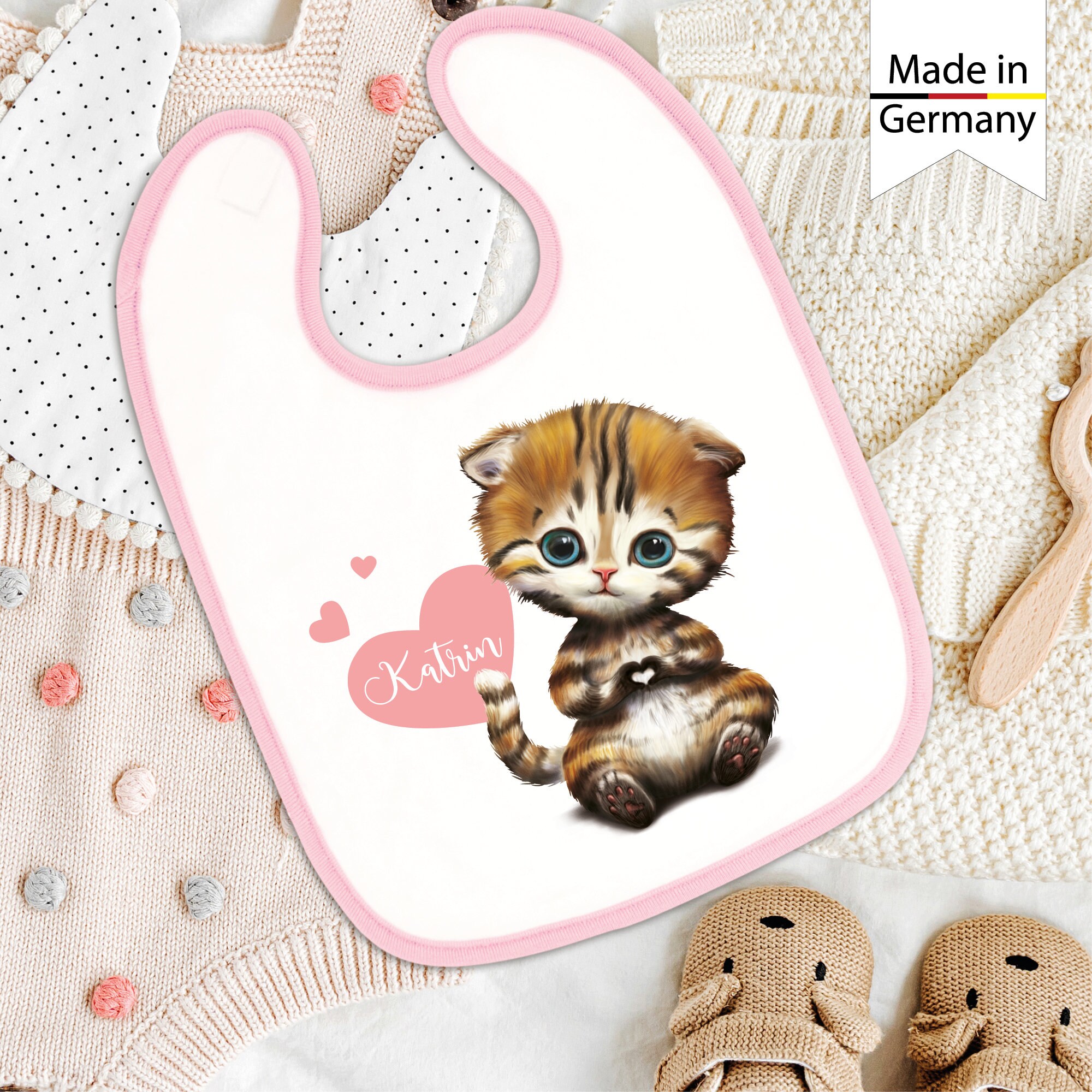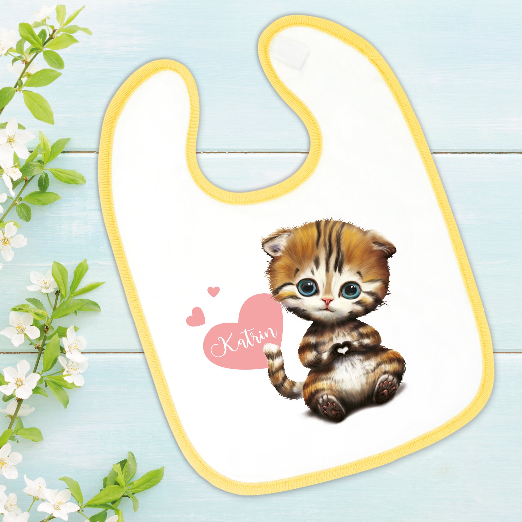 Bedrucktes Babylätzchen Katze Kätzchen Herz mit Klettverschluss Wunschnamen Individuell Kinder Lätzchen Kleinkind